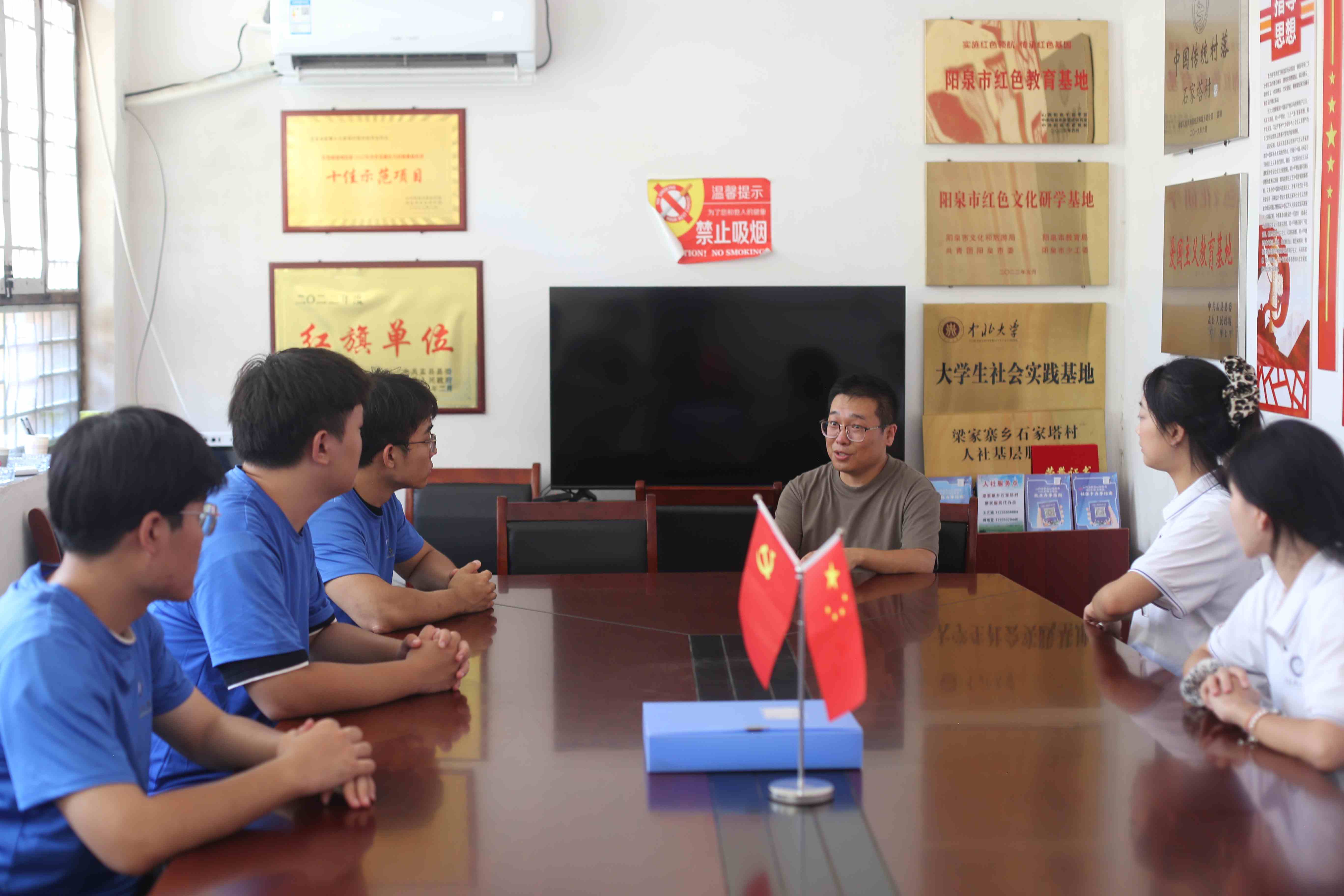 午后,服務隊抵達梁家寨石家塔村。在與當地干部閆勇老師的交流中,隊員們了解到當前鄉村志愿服務面臨著人員短缺、形式單一等現實困境,同時鄉村教育也急需注入新鮮血液,煥發出新的活力。針對這些問題,隊員們結合自身專業知識和實踐經驗,積極建言獻策。他們提出,可充分依托高校豐富的人才資源,建立長效穩定的校地合作機制,定期組織開展形式多樣的支教活動,為鄉村孩子們打開一扇通往廣闊知識世界的窗戶;同時,策劃開展文化科普講座、藝術興趣課堂等活動,全面提升村民的文化素養和科學意識。此外,隊員們還建議深度挖掘當地紅色資源,將紅色文化融入志愿服務,設計開發具有地域特色的志愿項目,以紅色精神為引領,吸引更多人關注和參與鄉村建設。雙方圍繞這些想法展開了熱烈的討論,并就吸引青年投身基層服務的有效途徑進行了深入探討,明確了后續實踐活動的方向,為鄉村發展勾勒出更加清晰的藍圖。