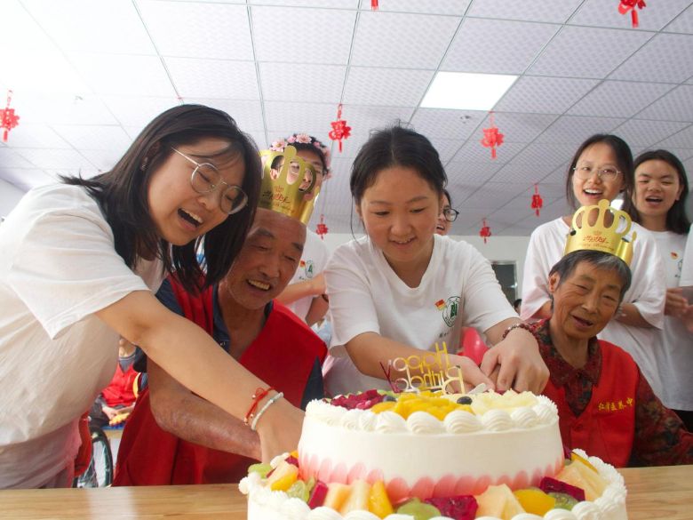 圖為隊員們為老人們集體慶生。 王清逸 供圖
