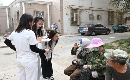圖為馬克思主義學院赴南疆尋訪兵團故事實踐團對職工進行訪談王新宇供圖