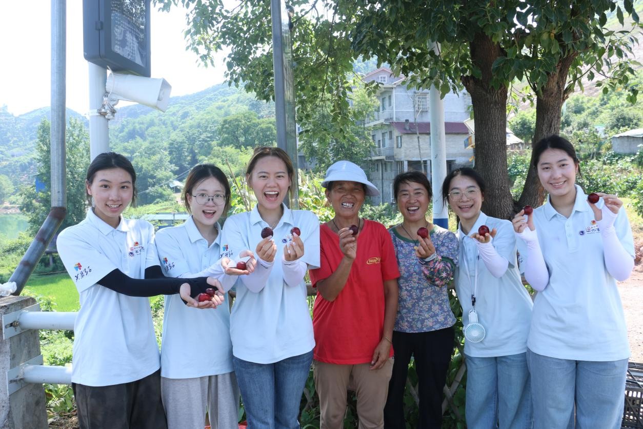 移步橋頭,一位售賣西瓜與李子的老奶奶成為另一道動人風景。她身旁,滿載的西瓜正在被顧客挑選購買,實踐團成員用鏡頭定格下這充滿生活氣息的瞬間。奶奶自豪地介紹,“都是自家山頭種的,甜得很嘞!”她以親民的價格惠及鄉(xiāng)鄰,常常從清晨忙碌至日中時分。臨走時,一位隊員掏出錢包,買下一大袋李子,打趣道“就當給奶奶‘打廣告’啦!帶回去給其他隊員們嘗嘗”。這座小小的橋頭,不僅成為她們增收的窗口,更是椒林村“家門口經濟”充滿韌性與活力的生動寫照。