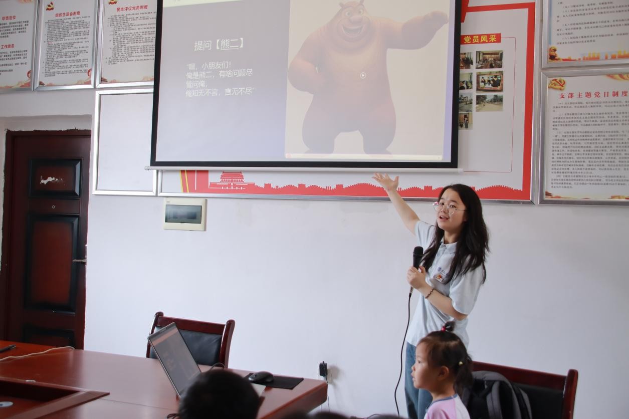 課程最后,實踐團將AI與孩子們熟悉的動畫角色“熊二”結合起來,通過技術賦予其特征與交互功能,構建可互動的AI形象。屏幕上的“熊二”憨態可掬、回應親切,讓孩子們驚喜不已。這一具象化形態讓AI變得可感可知,孩子們通過互動,明白科技并非遙不可及,而是能夠融入生活的工具;此環節縮短了孩子們對科技的認知距離,為未來的學習埋下了興趣種子。