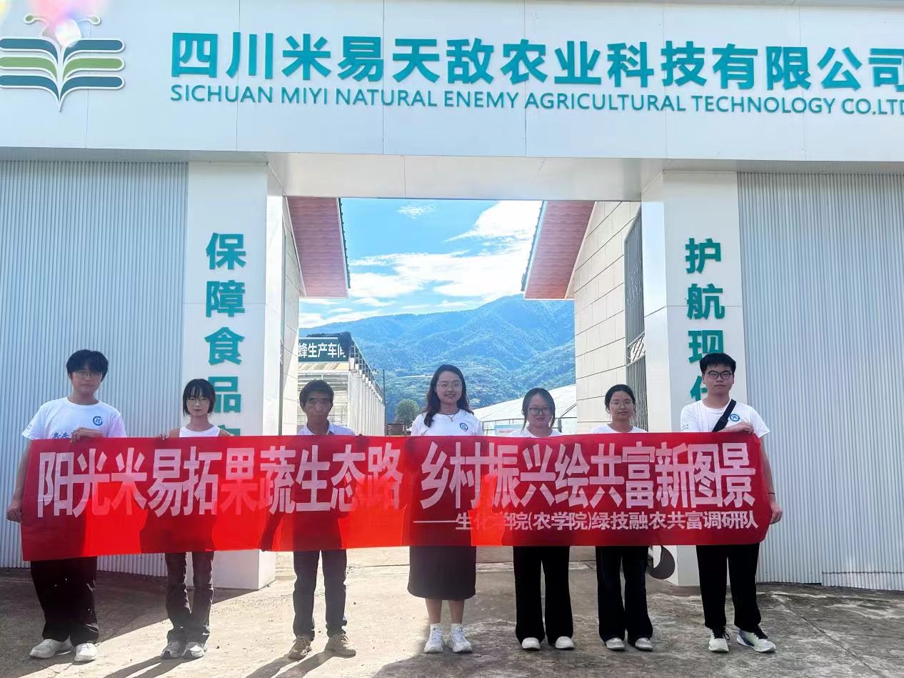 為了探索米易縣農(nóng)業(yè)產(chǎn)業(yè)生態(tài)與共富協(xié)同路徑、深化理論與實(shí)踐結(jié)合,2025年7月2日,攀枝花學(xué)院生物與化學(xué)工程學(xué)院(農(nóng)學(xué)院)“綠技融農(nóng)共富調(diào)研隊(duì)”到米易縣撒蓮鎮(zhèn)開展暑期實(shí)踐活動。踏入撒蓮鎮(zhèn),整齊田壟與錯落農(nóng)舍間,鄉(xiāng)村振興圖景躍然眼前,智慧農(nóng)業(yè)為田野注入活力。其中,安全村深耕蔬菜種植,“水稻+番茄”輪作成效顯著;埡口村的天敵工廠,依托生物防治、物理誘捕等綠色生態(tài)技術(shù),正引領(lǐng)農(nóng)業(yè)生產(chǎn)模式革新。