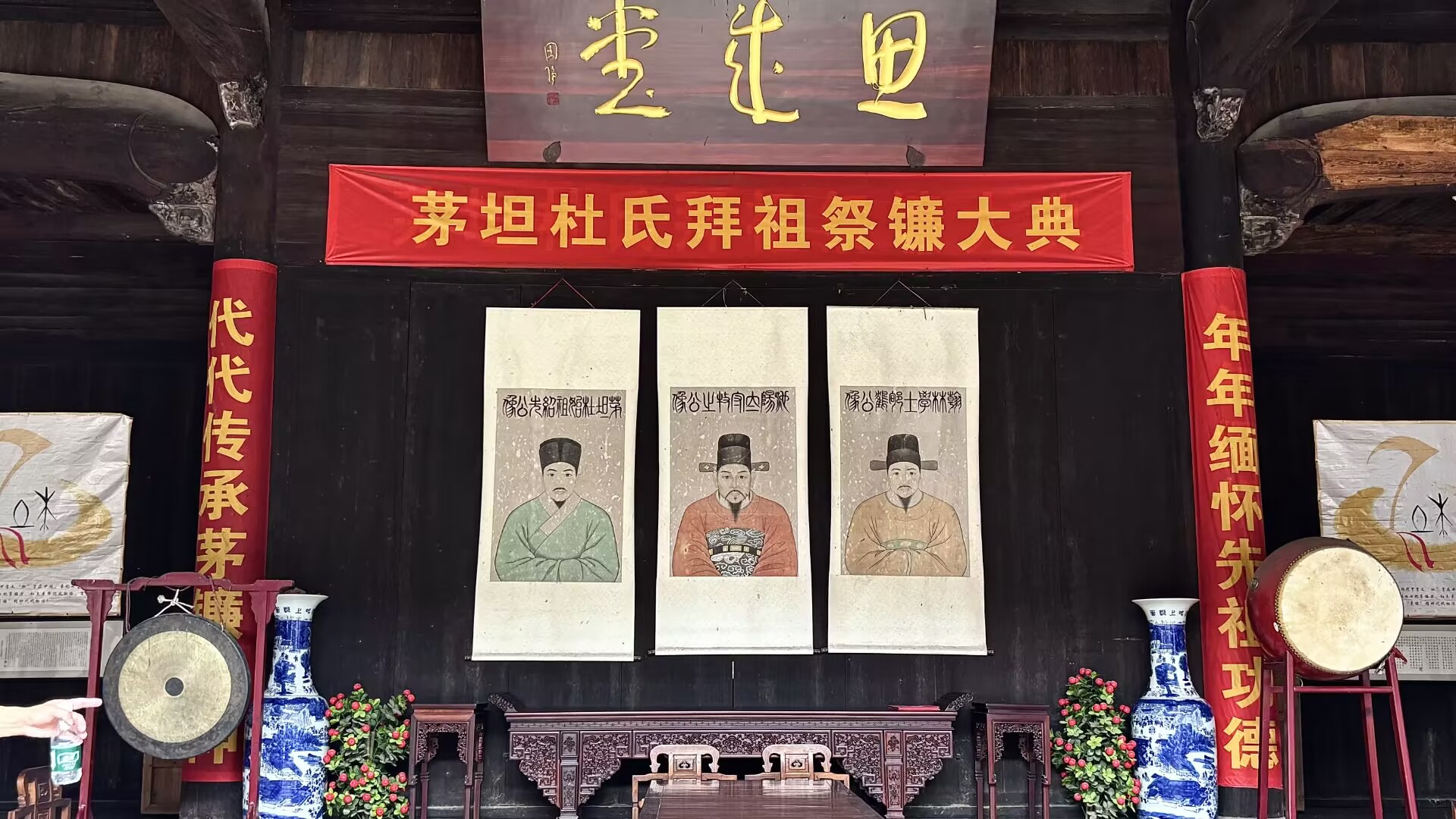 在祠堂一角,供奉著一把特別的茅鐮刀——這是每年祭茅鐮儀式的核心物件。據介紹,每逢春節、清明,杜氏族人都會齊聚祠堂,舉行莊重的祭茅鐮儀式。焚香、獻供、叩首,每一個環節都嚴謹遵循古制,既是對先祖開拓功績的緬懷,也是"茅鐮精神"的代際傳承。隊員們撫摸著祠堂內斑駁的梁柱,仿佛能聽見歷史深處的儺戲鼓點與祭祀祝禱聲,深刻體會到非遺文化如何在宗族儀式中生生不息。