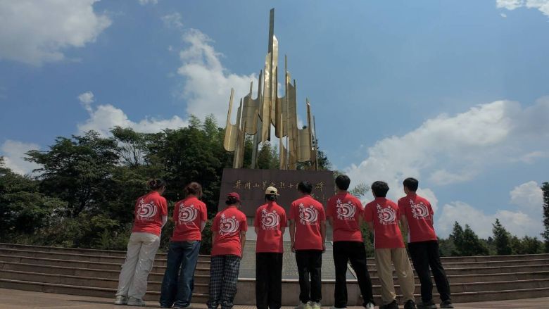 在專業講解員的動情敘述下,那段烽火連天的歲月仿佛在眼前重現。團隊成員神情肅穆,向為理想信念獻身的革命先烈致以深切哀悼。山頂巍峨聳立的革命烈士紀念碑,見證著國家從苦難走向輝煌的歷程。實踐團成員懷著無限敬仰,仰望紀念碑,用真摯的話語向先烈們匯報如今祖國的繁榮昌盛。