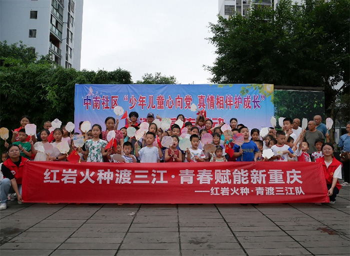 7月7日,“紅巖火種·青渡三江”隊走進合川區南津街街道中南社區,開展“黨心暖童心,防溺護安寧”主題實踐活動。通過“沙繪長歌·紅巖之聲”藝術展演,紅巖知識小課堂,暑期安全知識防范講解,漆扇制作等活動,讓“紅巖精神”進社區,在孩子心中播撒暑期安全種子,兩者在孩子們心中生根發芽,綻放絢麗之花。
