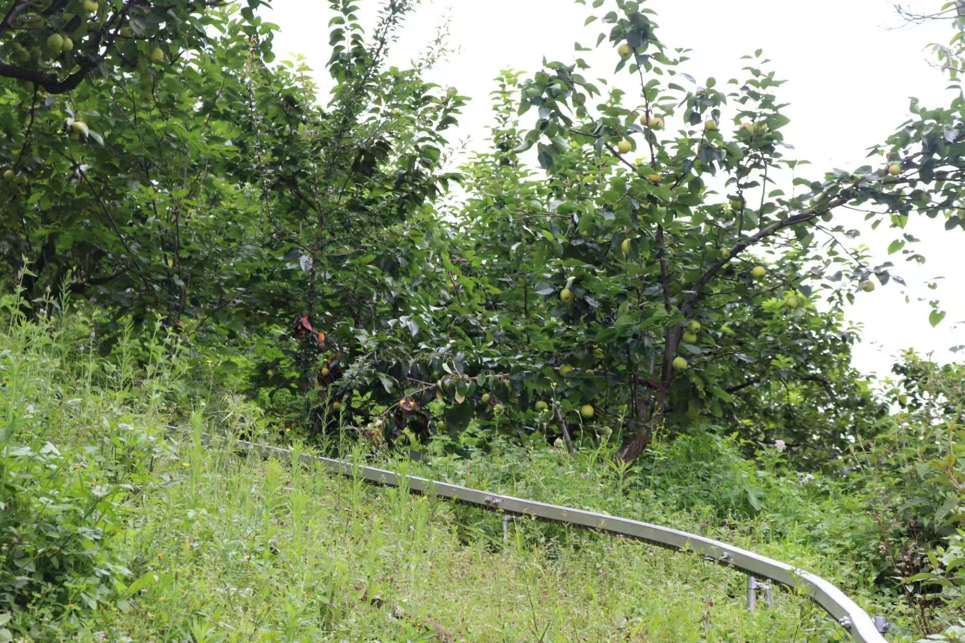 田間地頭,技術創新隨處可見:矮化密植試驗田將傳統6米行距大膽濃縮至1米,顯著提升土地利用率;科學間作套種在梨樹間套種中藥材續斷及玉米、黃豆等作物,實現土地資源高效利用與綜合產出提升,并采用多種管理模式,以促進產業的發展;綠色防控體系形成全方位保護網——果實套袋隔絕蟲害,石灰粉為樹干披上“防凍防蟲甲”,遮陽網兼具增溫保濕防蟲功效,使成熟期提前10-15天;輔以高效低毒的生物農藥、施用內蒙古優質羊糞等有機肥滋養土壤,設置驅鳥器及涂抹信息素的裝置等;雪梨果林中鋪設輕便軌道,運輸小火車穿梭送果,省時省力效率高。這套環境友好型技術組合拳,確保了果品安全與生態平衡。