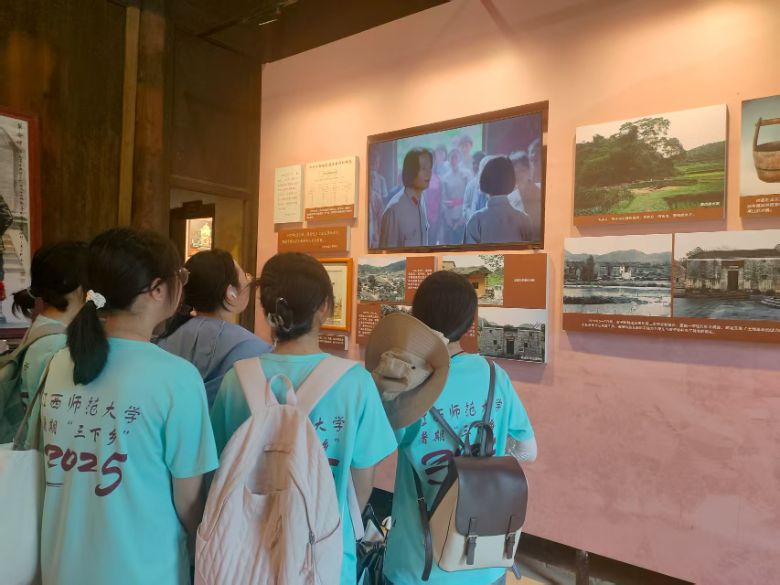 實踐隊踏入賀子珍故居,泛黃的歷史圖片、陳列的實物靜靜訴說著過往,電視屏幕循環播放的珍貴影像資料,讓黑白光影與現實場景交織。實踐隊隊員仿佛穿越時空,見證了賀子珍同志波瀾壯闊的一生。她是中國革命第一位女紅軍、共產黨員;她是一位偉大的母親,在蘇聯時節衣縮食照顧孩子;她更是一位英勇無畏的戰士,懷著身孕踏上長征路,還不顧安危掩護傷員,展現出共產黨員無私奉獻、敢于犧牲的崇高精神。通過實踐觀察,隊員們無不被賀子珍同志的精神所震撼,深刻感受到了革命先輩們的堅定信仰與偉大情懷。