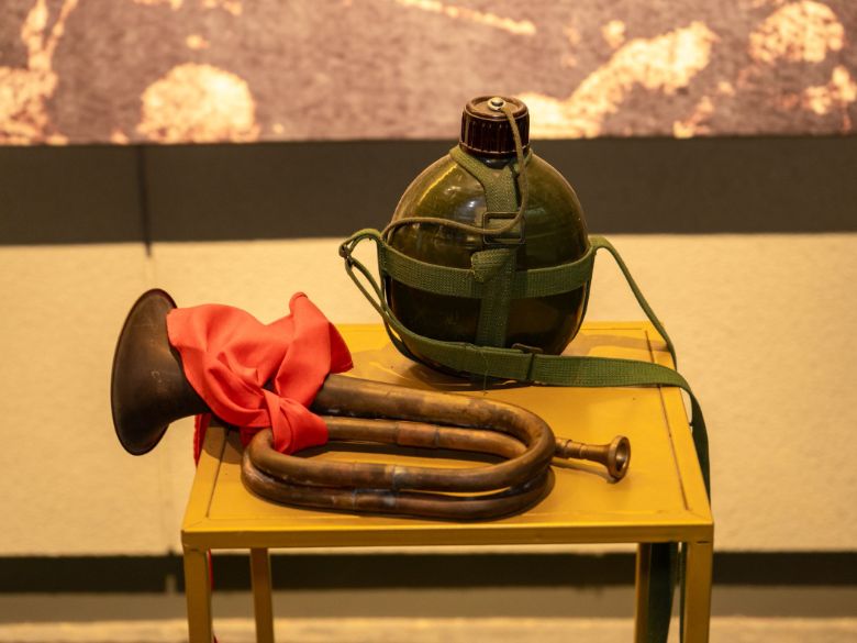 圖為抗戰時期的沖鋒號。田澤坤攝