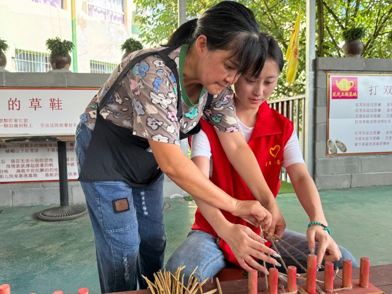 在研學基地,成員們體驗草鞋編織。這雙草鞋,曾伴隨紅軍戰(zhàn)士跋涉二萬五千里長征路,承載著艱苦奮斗、永不言棄的長征精神。成員們專注編織,指尖摩挲麻繩的粗糙觸感,歷史的厚重感撲面而來。成員王洪濤看著磨紅的手指堅定表示:“等烈士陵園落成,一定要去緬懷先烈。”