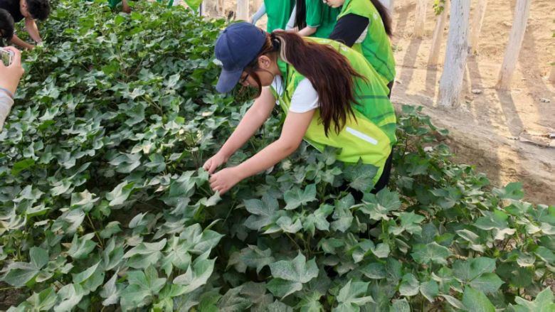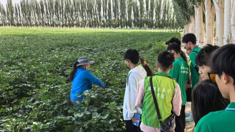 到達后,通過與農(nóng)戶交談知道此時恰逢棉花打頂關(guān)鍵節(jié)點,此環(huán)節(jié)對棉花增產(chǎn)及后續(xù)機械化采摘影響重大。團隊成員也即刻深入棉田,與農(nóng)戶并肩開展打頂作業(yè)。田間,成員們求知若渴,圍繞打頂手法、時機等要點,虛心向農(nóng)戶取經(jīng)。農(nóng)戶們也毫無保留,傾囊相授多年積淀的種植“寶典”,一來一往間,歡笑聲與講解聲交織,場面火熱。