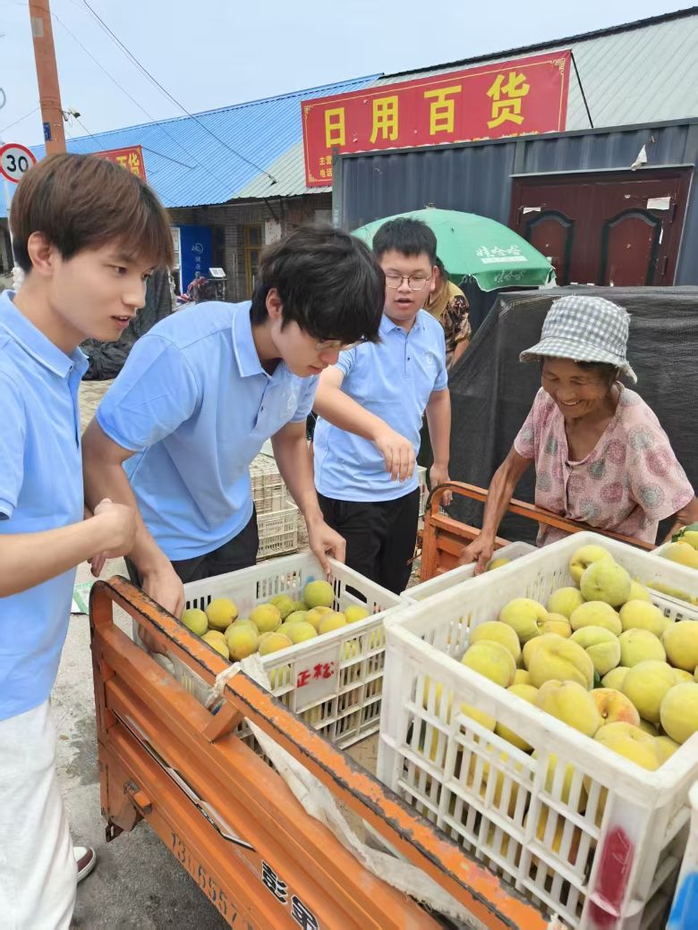 搬運結束后,果農從筐中挑出最大的桃子遞給成員們,笑著說:“嘗嘗咱李莊的甜桃!”大家連連擺手婉拒:“叔,我們能幫上忙就好!”這場助農行動,不僅為果農減輕了勞作負擔,更讓團隊掌握了農產品產銷的第一手資料。