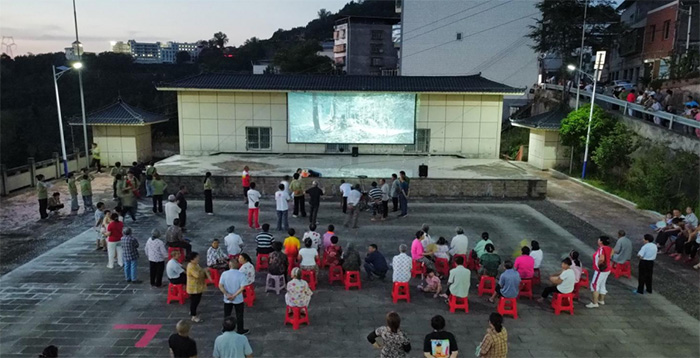 晚上8點,廣場的白色幕布亮起微光。村民們圍坐在一起,觀看熱血歷史影片。實踐團成員蹲坐在老人身旁,輕聲解說畫面中的歷史細節,夏夜里的光影交錯間,知識的傳遞與情感的共鳴在此刻渾然一體,勾勒出鄉村振興中最溫暖的人文圖景。
