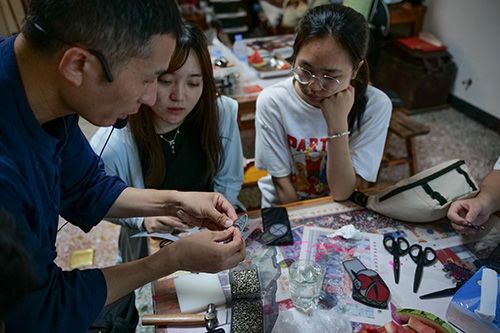 (圖為吳淵老師指導(dǎo)團(tuán)隊成員進(jìn)行紙影藝術(shù)創(chuàng)作)