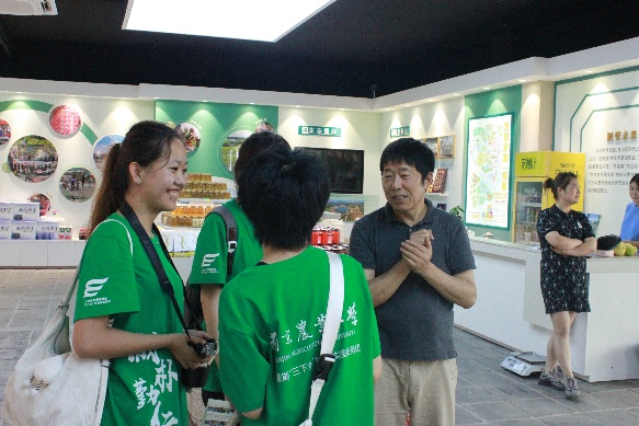 圖為與潘根興教授交談,參觀合作社商店