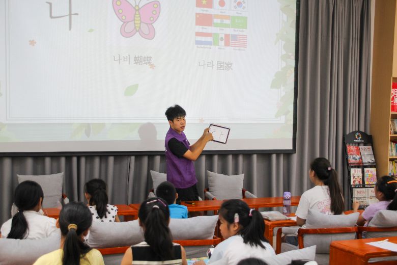 7月8日上午,志愿者李思遠以輕松幽默的方式為孩子們帶來了一堂趣味韓語小課堂。從基礎音節(jié)發(fā)音入手,搭配生動的韓服圖片展示與泡菜文化趣談,課堂瞬間變身“迷你韓國文化體驗館”。孩子們跟讀發(fā)音時認真的模樣、欣賞韓服時驚嘆的表情,以及對泡菜制作過程充滿好奇的提問,讓課堂氛圍異常活躍。“原來韓語的發(fā)音和中文不一樣,但學起來很有趣!”一名四年級學生課后興奮地說。這堂跨越文化的趣味課程,不僅開拓了孩子們的視野,更在他們心中種下了探索多元文化的興趣種子。