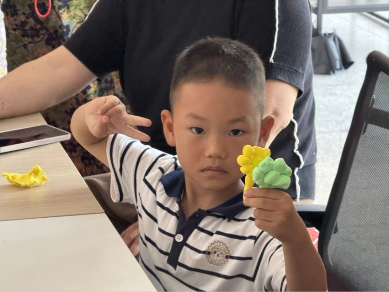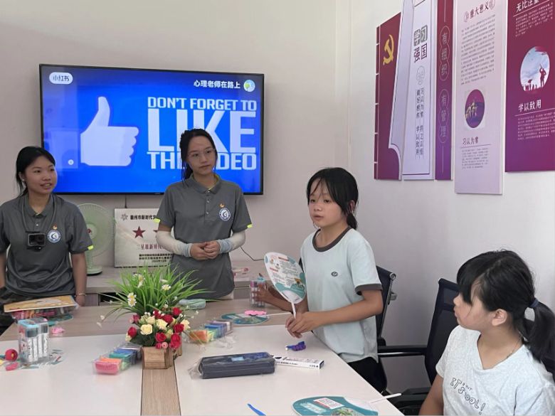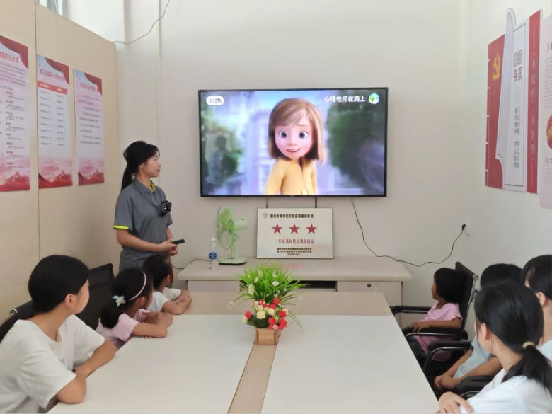 隨后,隊員們播放了專門為兒童設(shè)計的心理教育視頻。視頻以生動有趣的形式,引導(dǎo)孩子們認識不同的基本情緒及其產(chǎn)生原因,幫助他們學(xué)會理解和接納自己的感受。觀看視頻后,活動進入創(chuàng)意實踐環(huán)節(jié)——“我的情緒小世界”粘土手工創(chuàng)作。孩子們在隊員們的引導(dǎo)下,用五彩斑斕的粘土捏制代表自己情緒的作品,想象力與創(chuàng)造力得到充分釋放。