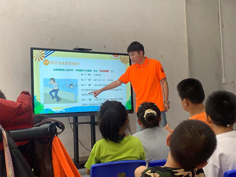 圖為團隊成員為孩子們教授《珍愛生命,謹防溺水》課程,劉潮萍攝