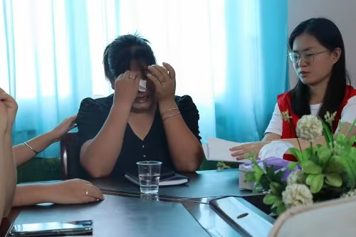 在回憶難忘的志愿服務經歷時,艾聰女士稍作沉思,情緒便瞬間涌了上來。她低下頭,眼淚盈滿眼眶,聲音有些顫抖地講述起村里一位半身癱瘓的孤寡老人的故事。幾次哽咽停頓后,她繼續道:“老人身體不便,我們第一次去時,她的屋子亂成一團,自己根本沒法收拾,看著特別心疼……”真摯的情感讓在場的實踐團成員也為之動容,眼中充滿了對這位志愿者的深深敬意與尊重。
