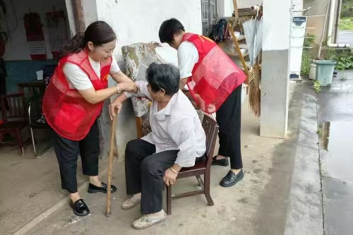 (圖為湘潭縣紫竹村巾幗志愿服務隊照料獨居老人)