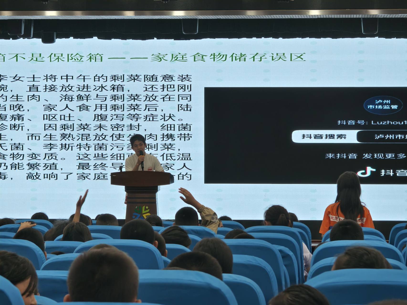 活動伊始“安心食光”宣講團以 “吃得健康,快樂成長” 為主題,結合趣味案例開講。先通過“觀看街頭美食的陰性風險”從而去認識街頭美食對人體危害;再用直觀的配料表和保質期與生產日期,講解膳食金字塔結構,科普主食、蔬果、肉蛋奶的合理攝入比例以及提高在購物中對食品安全風險的認識,引導大家認識 “吃好飯” 的重要性。過程中穿插問答,同學們積極參與,在思考與交流中加深對知識的理解。