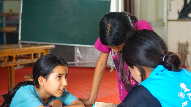 (圖為阿克蘇市友誼社區(qū)茶苑內(nèi)與青少年互動(dòng)特寫)