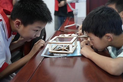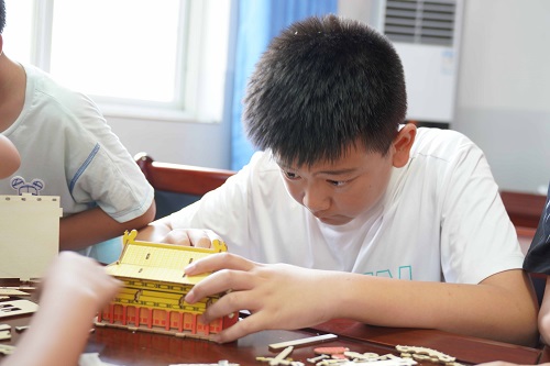 童心點燃代碼光,數智之翼啟遠航。團隊聚焦數字素養啟蒙,播撒科技創新種子,以VR技術賦能編程教育,讓邏輯“動”起來。志愿者通過講解VR眼鏡的工作原理,幫助孩子們建立對虛擬現實技術的初步認知。隨后,孩子們在圖形化編程界面中拖拽“積木式”模塊,理解坐標移動、循環執行等基礎概念,逐步形成計算思維。全息影像環節中,孩子們親手制作三棱鏡裝置,在調試角度與光源位置的過程中,揭開立體成像的技術面紗。機械臂體驗課上,孩子們使用吸管、橡皮筋制作機械爪,在“夾球挑戰”中理解摩擦力、力矩平衡等物理知識,逐步形成“原理認知—模型制作—優化改進”的工程思維過程。科技主題T恤繪制則激發孩子們的藝術創造力,將飛船、機器人等未來想象轉化為視覺表達,完成“技術認知—工程實踐—創意表達”的素養進階。讓能力“燃”起來,讓夢想“飛”起來,讓科技的種子在童心中悄然萌芽。