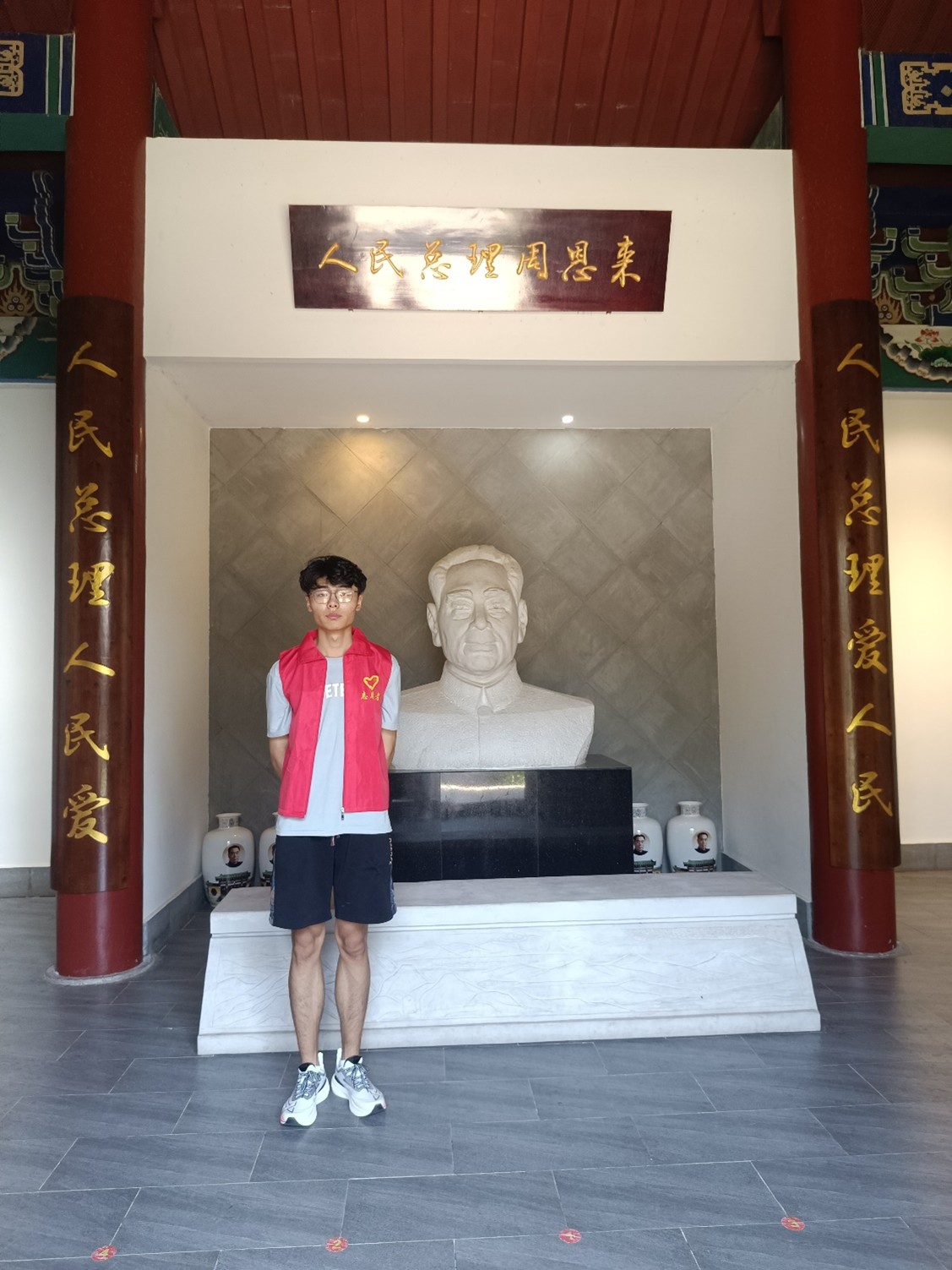 實踐隊員們在實踐隊長的帶領下來到了周恩來總理的感恩殿,在感恩殿中屹立著周總理的一座巨大的雕像,通過在感恩殿中的對聯:“人民總理愛人民,人民總理人民愛”,實踐隊員們深刻的感受到了周總理的深得民心。在隊長的帶領下,實踐隊員與周總理的雕像進行一次合照,同時也表達了大家對周總理的敬佩。