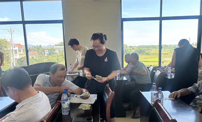 會議尾聲,村里的老黨員們欣喜而又自豪地繳納屬于自己的那份黨費,目光所及是一位位黨員在歷經風霜后對信仰的純粹堅守,對組織最深沉無聲的告白。這份跨越時光的忠誠,成為“三下鄉”學子眼中最生動、最震撼的黨性教材。初心使命的踐行與恪守,在歲月沉淀中熠熠生輝。