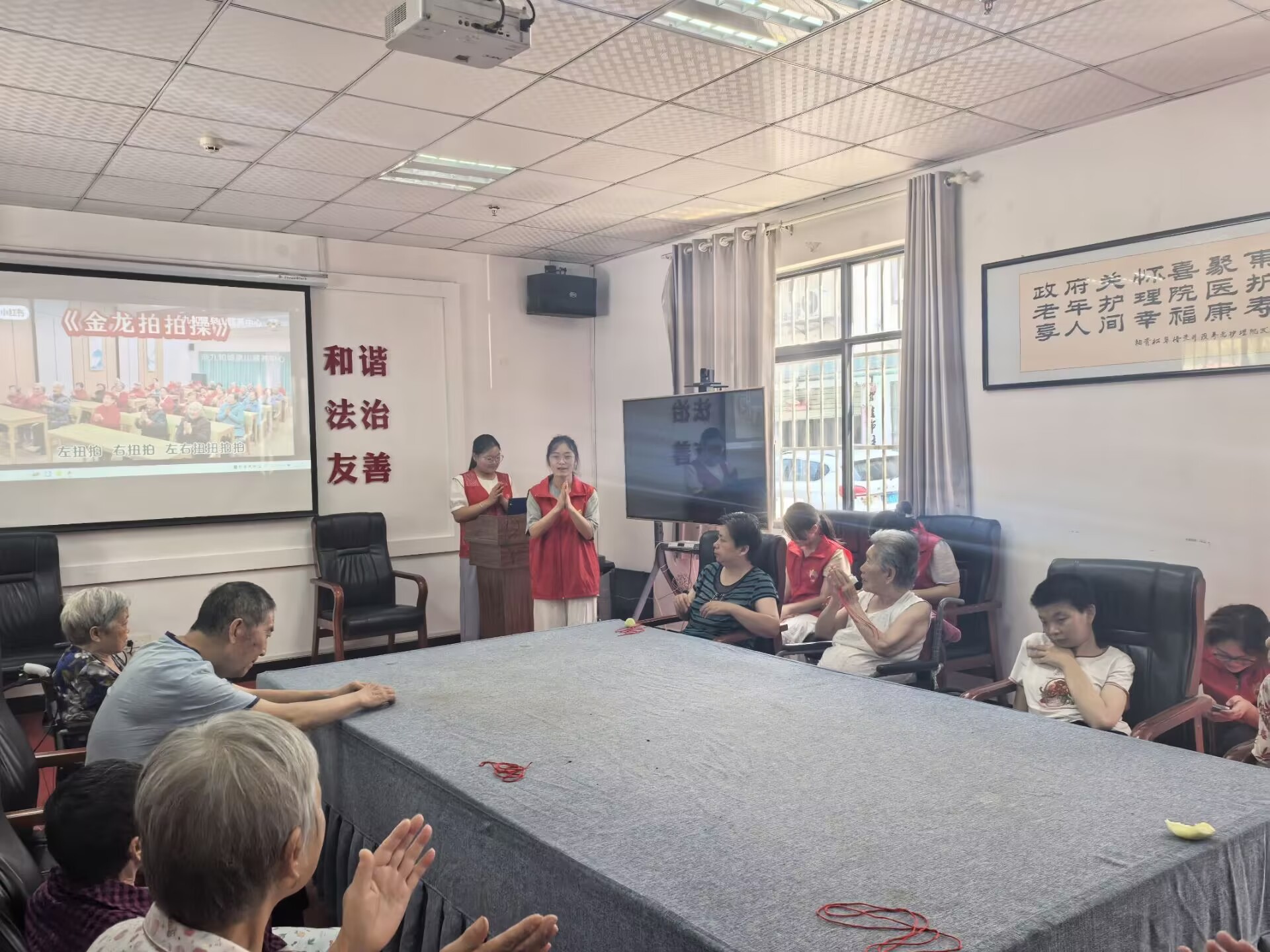 2025年6月28日,七彩社區銀齡拾憶暑期社會實踐隊走進十堰市中醫老年護理院,開展了一場意義非凡的養老助老社會實踐活動,以唱紅歌、編中國結、教手指操等形式,開展養老助老社會實踐活動,用青春力量為老人編織溫暖時光。