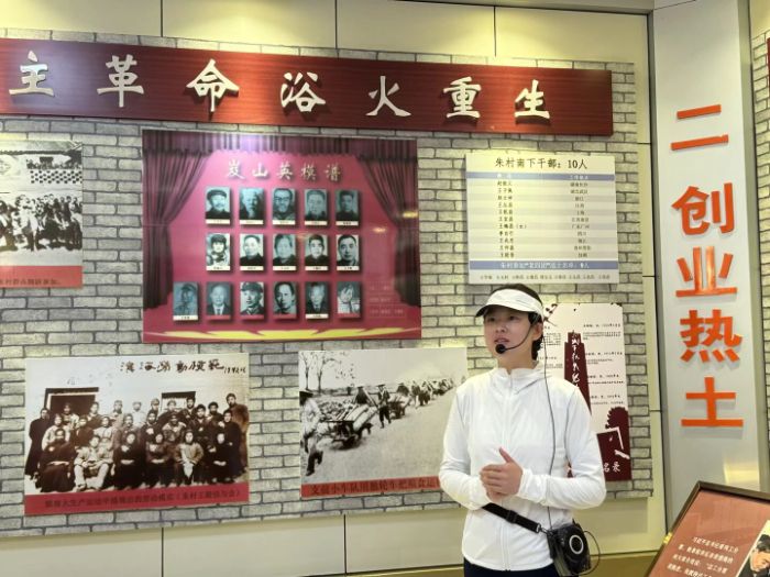 7月5日上午,團隊成員首先來到朱村抗日戰斗紀念館。參觀期間,講解員指著一幅戰斗場景復原圖解釋道:“1944年除夕,就在這片土地上,‘鋼八連’的勇士們為掩護群眾轉移,與數倍于己的日偽軍血戰到底,用生命鑄就了‘槍聲就是命令’的永恒誓言。”團隊成員通過此次實地學習,深刻感悟了偉大的抗戰精神和深厚的軍民魚水情,進一步堅定了理想信念。