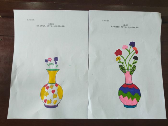 美術課上,傳統元素成了創作的靈感。7月22日的美術課上,隊員們給每張畫紙印上空白花瓶輪廓,讓孩子們“把家鄉最美的傳統東西畫進去”。有的孩子在瓶身畫滿荷花——黃河岸邊的荷花是魚山鎮的夏日一景;有的畫了魚山剪影,山頂加了個小亭子,“那是曹植文化園”;還有個女生畫了冒著熱氣的小鍋,旁邊標著“阿膠糕”,“奶奶說這是咱東阿的好東西,能補身體”。這些作品里,鄉土與傳統自然交融,成了孩子們對“家鄉文化”最直觀的表達。