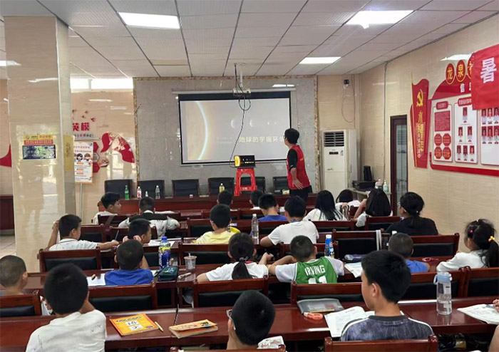 宇宙探秘:以科學點亮少年壯志 “地球的宇宙環(huán)境”科普課上,武漢晴川學院機械與電氣工程學院的志愿者用生動的動畫演示、有趣的知識講解,帶孩子們“穿越”到浩瀚星空。“為什么地球是唯一有生命的星球?”“流星劃過天空時在‘燃燒’什么?”一個個問題點燃了好奇心,孩子們的小臉上寫滿專注與驚嘆。這堂課播下的不僅是科學知識的種子,更是對未知世界的向往與勇氣。社區(qū)深知,青少年的成長需要廣闊的視野,科普教育正是打開世界的一扇窗,讓他們在仰望星空時,敢于暢想未來、立志前行。