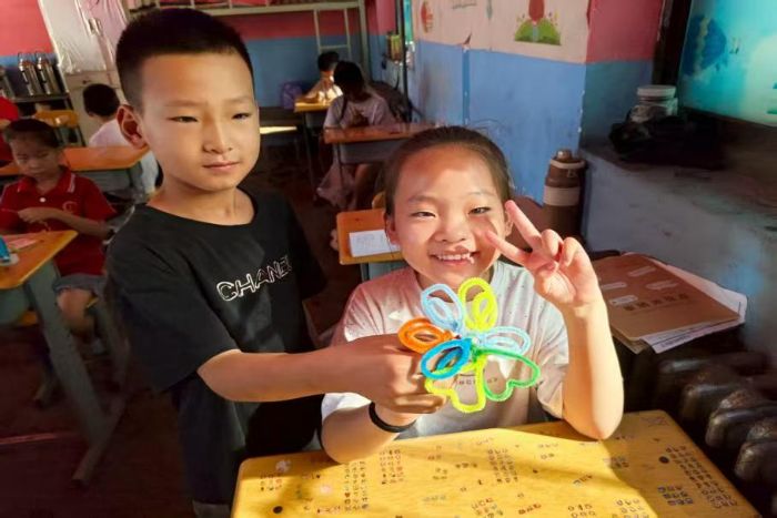 7月21日,由“筑夢暖童心,晉師伴成長”育人暖陽教育幫扶隊組織的素質拓展課在山西省呂梁市柳林縣薛村鎮墕哉小學開展。志愿者們把一捧捧五彩扭扭棒放在孩子們面前,以“創意小天地”為主題,讓指尖的巧思扭出花,協作的暖意開成蕊。