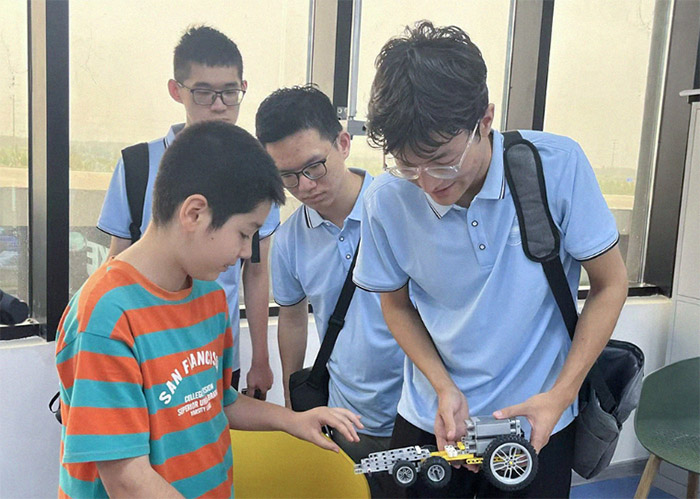 在開設普通話推廣課程的過程中,王易同學則分享道:“孩子們用不太標準的普通話喊出成語時,眼睛里的光特別動人。當我們手拉手跳起舞,語言的隔閡仿佛瞬間消失,那種純粹的快樂讓我懂得,推廣通用語言不只是教說話,更是在播撒相互理解、彼此認同的種子。”