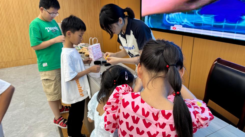 隨后,主講人李婉婷巧妙地將小朋友們的視線引向了浩瀚無垠的宇宙星空。航天知識科普環節從小朋友們熟悉的“太陽系家族”入手,用清晰的圖表和通俗的語言,系統介紹了恒星、行星、衛星等天體的基本概念及其相互關系。當小朋友們了解到太陽系的直徑超過287億公里,而人類賴以生存的地球在其中如一粒微塵時,超八成小朋友表示驚訝并舉手提問。隨著航天知識科普進一步深入,團隊成員和現場小朋友了解到更多航天知識,有載人航天“神舟”系列飛船,有探測月球和火星的“嫦娥”“天問”。李婉婷結合實物圖片、視頻資料和貼近生活的類比,她將導航衛星比作“天上的指南針”,將復雜的航天器分類知識變得直觀易懂。團隊成員還組織開展了“看圖識器”的趣味互動,讓小朋友們根據圖片辨識不同類型航天器,將被動接收的知識轉化為主動識別的能力。