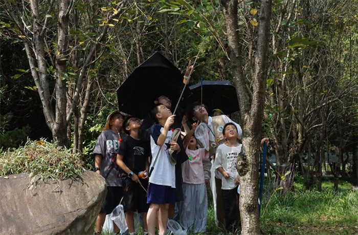 理論課后,孩子們?cè)趫F(tuán)隊(duì)成員小燁老師老師的指導(dǎo)下用伸縮桿和膠水制作抓蟬工具。在隊(duì)員的安全指引下,學(xué)生們手持自制工具走進(jìn)林間,循著蟬鳴尋找。這個(gè)環(huán)節(jié)讓孩子們?cè)谟H身體驗(yàn)中拉近與自然的距離,更深刻地感受自然生命的奇妙。