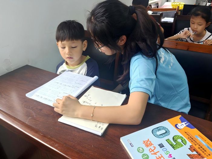 聚焦暑期學(xué)習(xí)需求,實(shí)踐隊(duì)設(shè)立了“課業(yè)加油站”時(shí)段。隊(duì)員們化身耐心細(xì)致的“輔導(dǎo)員”,針對(duì)不同年級(jí)孩子的學(xué)習(xí)難點(diǎn),提供一對(duì)一輔導(dǎo)。無論是語文閱讀理解的困惑,還是數(shù)學(xué)應(yīng)用題的卡點(diǎn),隊(duì)員們總是循循善誘,引導(dǎo)獨(dú)立思考,掌握方法。同時(shí),注重培養(yǎng)規(guī)范書寫、認(rèn)真審題、時(shí)間管理等良好學(xué)習(xí)習(xí)慣,為新學(xué)期蓄力。