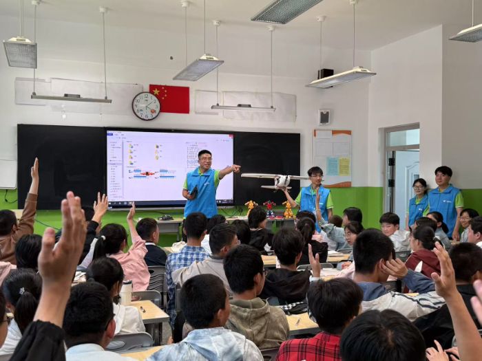 實踐互動:模型與對話中播撒科學種子 在互動環節,宣講團成員們帶來了航模飛機、四旋翼無人機和各斗機器人模型。“原來遙控飛行背后的原理是這樣的!”、“機器人的搏斗是怎么實現的?”同學們圍攏在模型前,志愿者們耐心解答同學們的問題,講解模型的原理。“原來課本里的物理知識能這樣應用到實際!”一位參與模型操作的同學興奮地說。此次互動,是“兩彈一星”精神的生動詮釋,更在雪域少年的心中深深埋下了探索真理、勇攀科技高峰的火種。