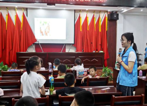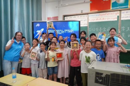 1揚帆未來航藍海,航夢啟程求新知7月7日,支教團以“藍海探索:航天科技揚未來帆”為主題,用生動的案例向孩子們科普航天科技知識,還特別介紹了武漢紡織大學的科研成果——由玄武巖纖維“織”成的五星紅旗,并通過實物圖片和原理演示,讓孩子們感受到“紡織+航天”的跨界創(chuàng)新魅力。恰逢“七七事變”88周年紀念日,支教隊與孩子們展開互動問答,引導孩子們銘記歷史脈絡,傳承民族精神,樹立“為中華之崛起而讀書”的遠大志向。