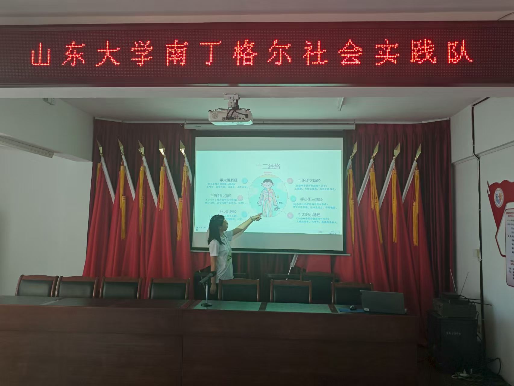 為弘揚中醫傳統文化,傳播中醫養生智慧,增強文化自信,2025年7月30日,山東大學南丁格爾“篤學尚行”社會實踐隊隊員蔡珊妮前往于彭田村展開宣講。