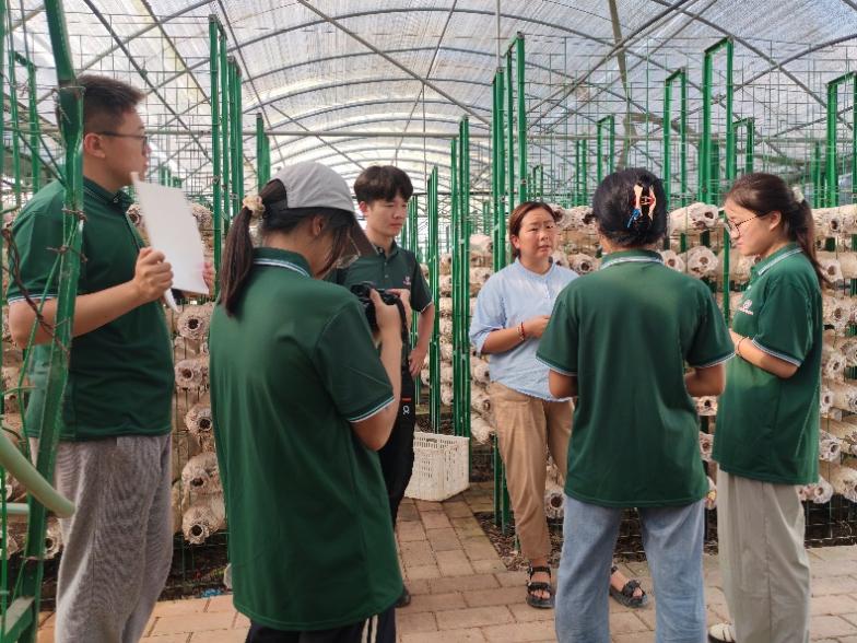當(dāng)日下午,實(shí)踐隊(duì)走進(jìn)左家鄉(xiāng),先后走訪了德源菌業(yè)和黃波菌業(yè)。隊(duì)員們深入香菇、靈芝、猴頭菇等食用菌的培育生產(chǎn)車間、加工車間以及菌棒生產(chǎn)車間,全方位探尋特色食用菌從菌棒培育到成品加工的全過程。工作人員詳細(xì)介紹了企業(yè)的廢棒再利用循環(huán)農(nóng)業(yè)模式,讓隊(duì)員們對(duì)“全域有機(jī)”產(chǎn)業(yè)發(fā)展有了更深刻的理解。