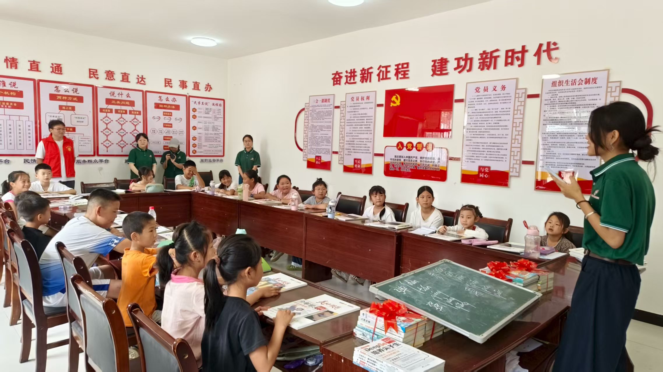 浙江工商大學“推普筑夢,語潤兩當”暑期社會實踐隊 隊員在興化鄉(xiāng)暑托班的教學場景