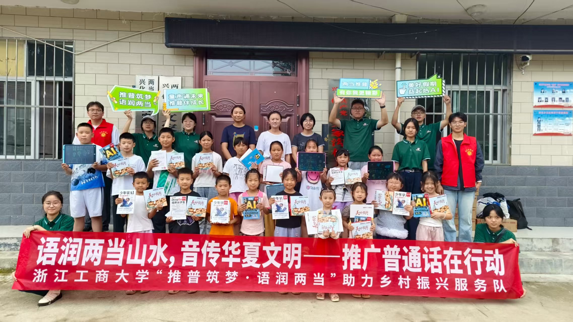 從橋邊音樂會與近百位村民的輕松互動,到興化鄉入戶調研覆蓋全村86%常住人口——團隊分三組走訪30戶家庭,發放問卷105份,回收有效問卷97份,數據顯示青少年群體普通話普及率達92%,中老年群體僅37%,方言依賴性較強——實踐隊用一次次貼近鄉土的實踐,為精準推普錨定了清晰方向。從金洞小學的童心趣學課堂到助農直播的智教帶貨現場,普通話如春雨般悄然浸潤鄉村教育的土壤,更在產銷對接中架起了溝通橋梁。