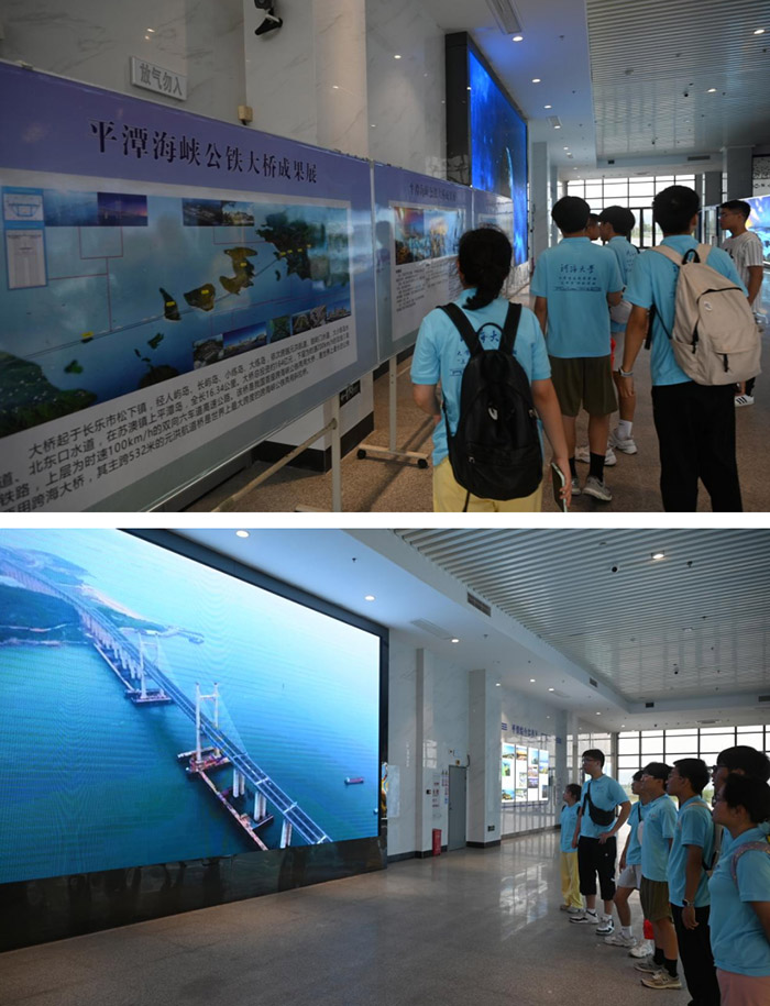 技術(shù)突破與國家戰(zhàn)略:感受橋梁工程的時代力量 隨后,實踐團赴平潭海峽公鐵兩用大橋開展實地學習。作為我國首座真正意義上的跨海公鐵兩用大橋,該工程在建設(shè)中克服了強風、巨浪、深基巖等世界級技術(shù)難題,充分體現(xiàn)了中國橋梁建設(shè)的科技創(chuàng)新力與工程組織力。