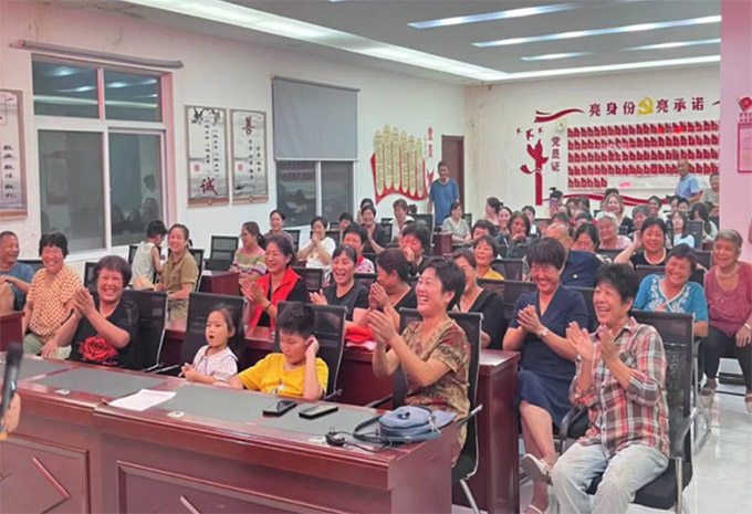 社區宣講:青春之聲傳遞信仰力量 長豐縣雙墩鎮滁河社區宣講現場,隊員以渡江戰役群眾籌船故事開篇,吸引居民關注。社區提前布置會場,居民陸續入座,會議室很快坐滿。