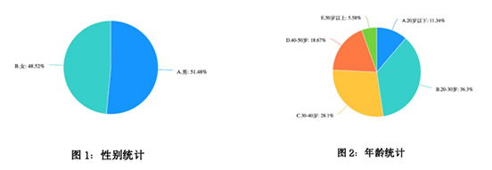 數(shù)據(jù)分析 本次問(wèn)卷調(diào)查樣本由團(tuán)隊(duì)通過(guò)線上及線下兩種方式發(fā)放問(wèn)卷的方法取得,共收集有效問(wèn)卷573份。此次問(wèn)卷覆蓋多個(gè)年齡段且男女性別比相差不大,以增強(qiáng)此次調(diào)查的說(shuō)服力。