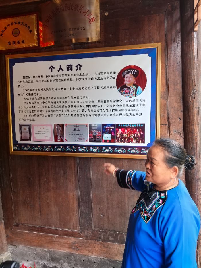 陳千均老師泛黃的歌本與黨員證、吳臘保老師布滿注音的教案、吳廷翠老師“唱苗歌沒有經(jīng)濟報酬”的坦誠話語,以及他們在各自崗位上克服困難、堅持傳習(xí)的身影——無論是深夜學(xué)習(xí)班的燈火、傳習(xí)所里的歌聲,還是下班后堅持的排練——無不訴說著對民族文化的深沉熱愛與責(zé)任擔(dān)當(dāng)。“苗韻尋聲”團(tuán)隊深切感受到,保護(hù)湘西苗族民歌,不僅是守護(hù)一個民族獨特的聲音記憶,更是尊重文化多樣性、守護(hù)中華文化的重要實踐,是踐行“兩個結(jié)合”的生動體現(xiàn)。