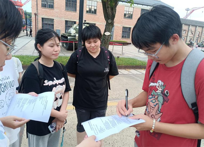(圖為實(shí)踐隊(duì)在船政文化博物館區(qū)內(nèi)進(jìn)行調(diào)查問卷 范夢雨/提供)