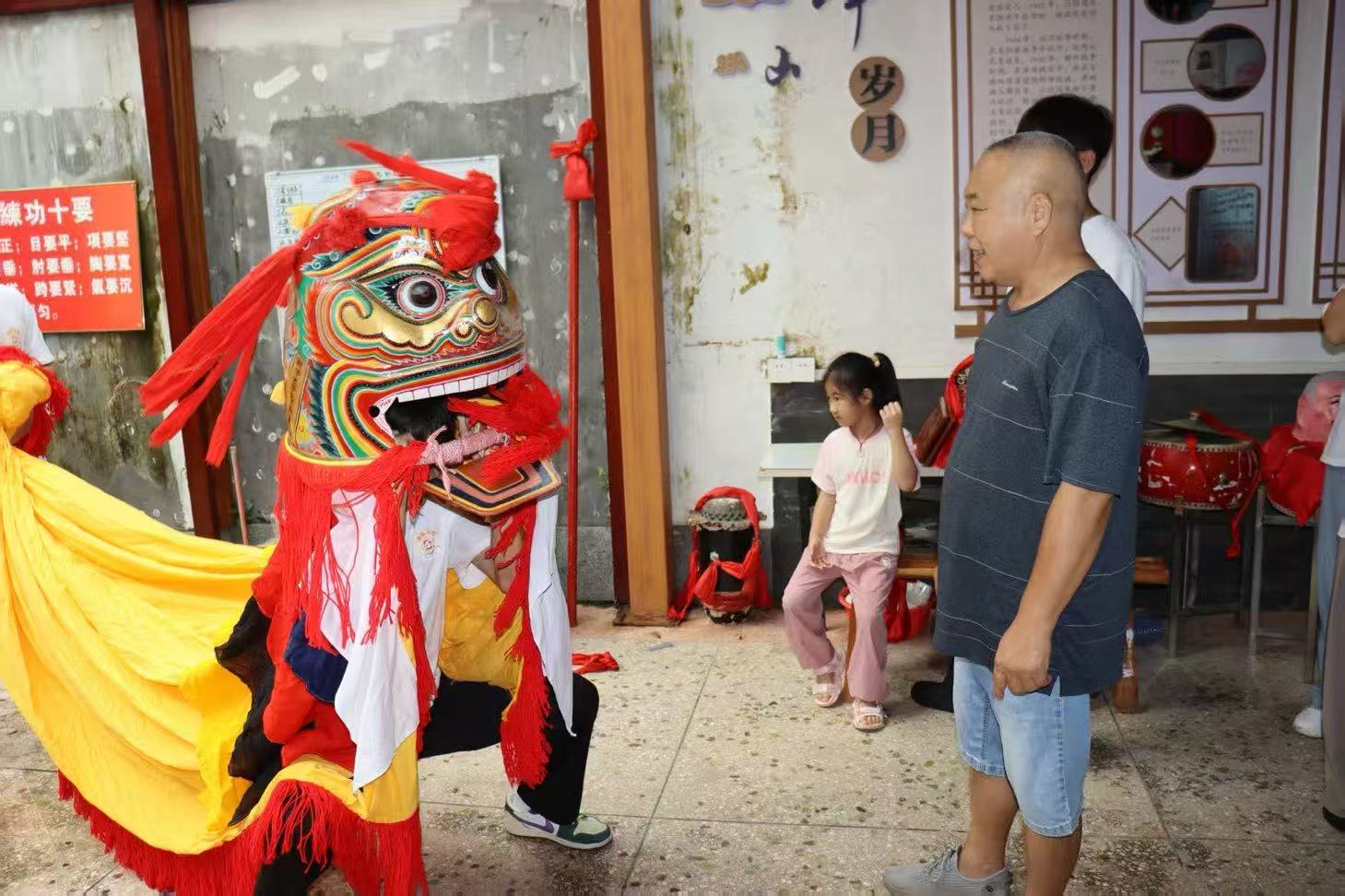 圖為高埔崗村史館貓頭獅學(xué)習(xí)者表演舞貓頭獅 陳卓攝