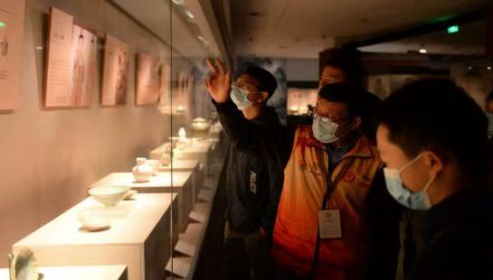在歷史博物館的青銅器展廳內,當地講解員為參觀者講解南水北調工程河南段的文物保護成果,當講解到青銅器時,提到了古人對天地的崇拜...她專業的解說吸引了不少游客駐足聆聽。副隊長則帶領隊員在博物館多個展區間穿梭,進行系統的觀眾調研工作。